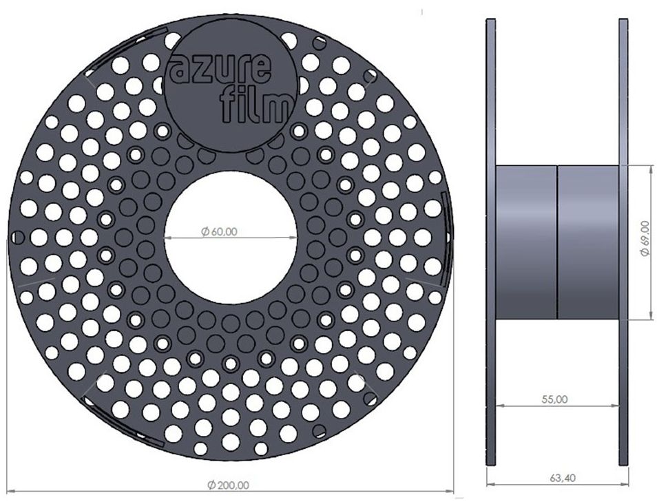 Az AzureFilm PLA (polilaktid) jó mechanikai tulajdonságokkal bír és kiváló nyomtatási minőséget biztosít. Az anyag olyan tárgyak elkészítésére alkalmas, amelyek nagy szilárdságot és merevséget igényelnek. A Filament könnyen feldolgozható (nincs vetemedés).
