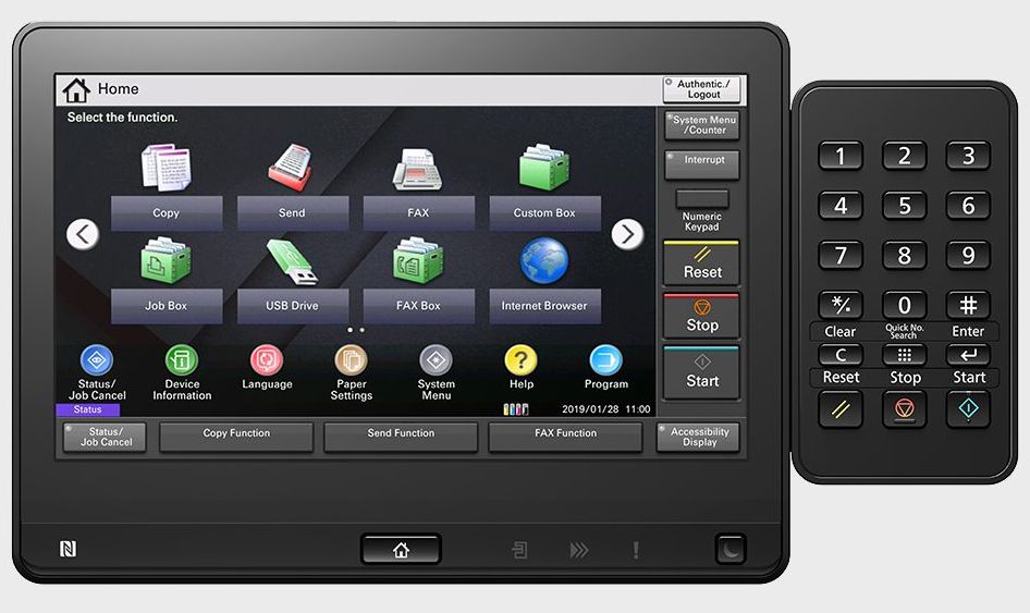 - DF-7110* Befejezőegység + AK-7110: Főtálca: Max. 4 000 A4-es lap (300 lap BF-730 kiegészítővel); max. 52 – 300 g/m2; max. A6R–SRA3, Három helyen képes összetűzni akár 65 A4-es vagy 30 A3-as lapot, B5 –SRA3
