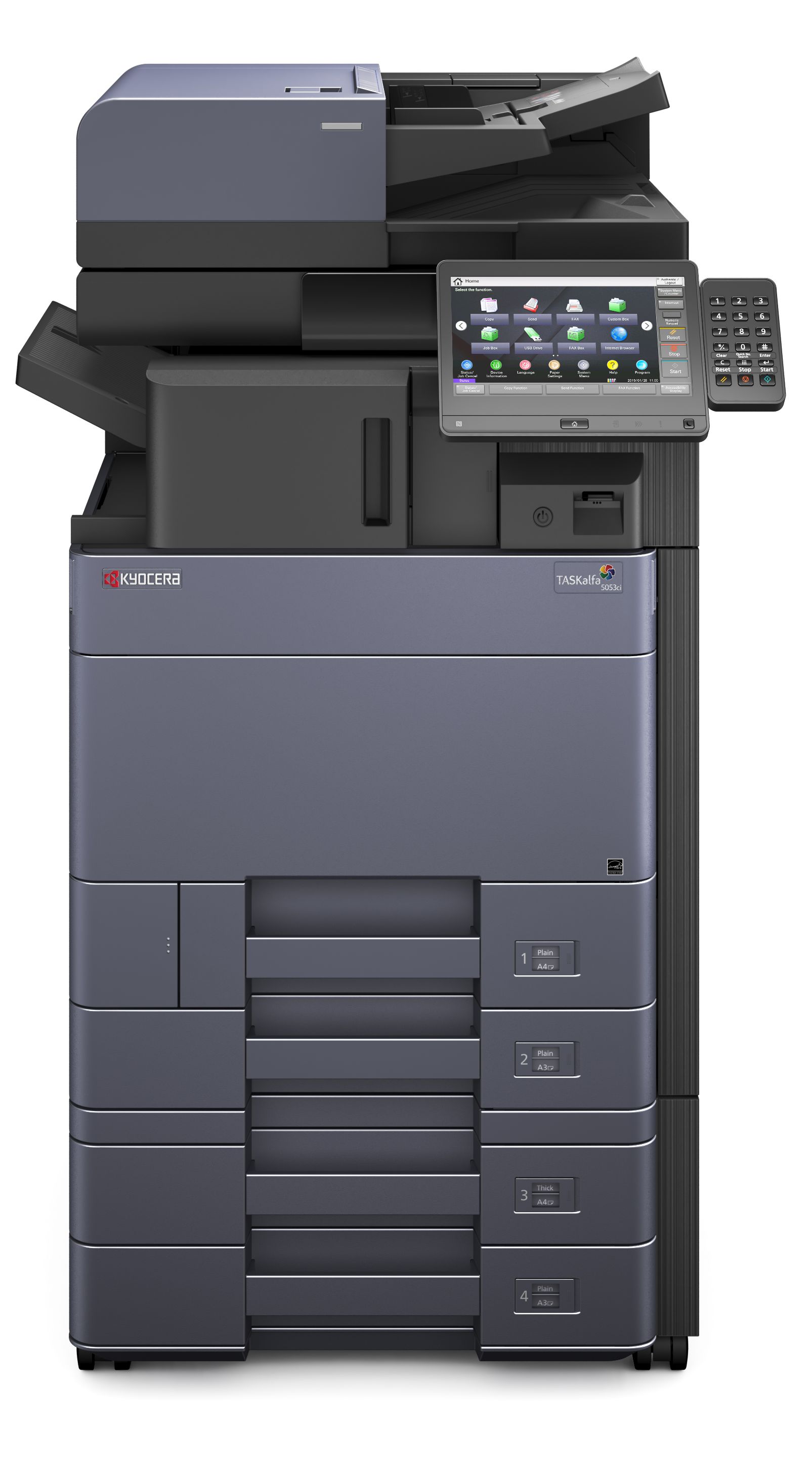 Kapacitás - Papírkapacitás: 1x500 lap (A4 papírfiók), 1x500 lap (A3 papírfiók), 150 lap (kézi adagoló) (Opciókkal összesen max. 7150 lap.)