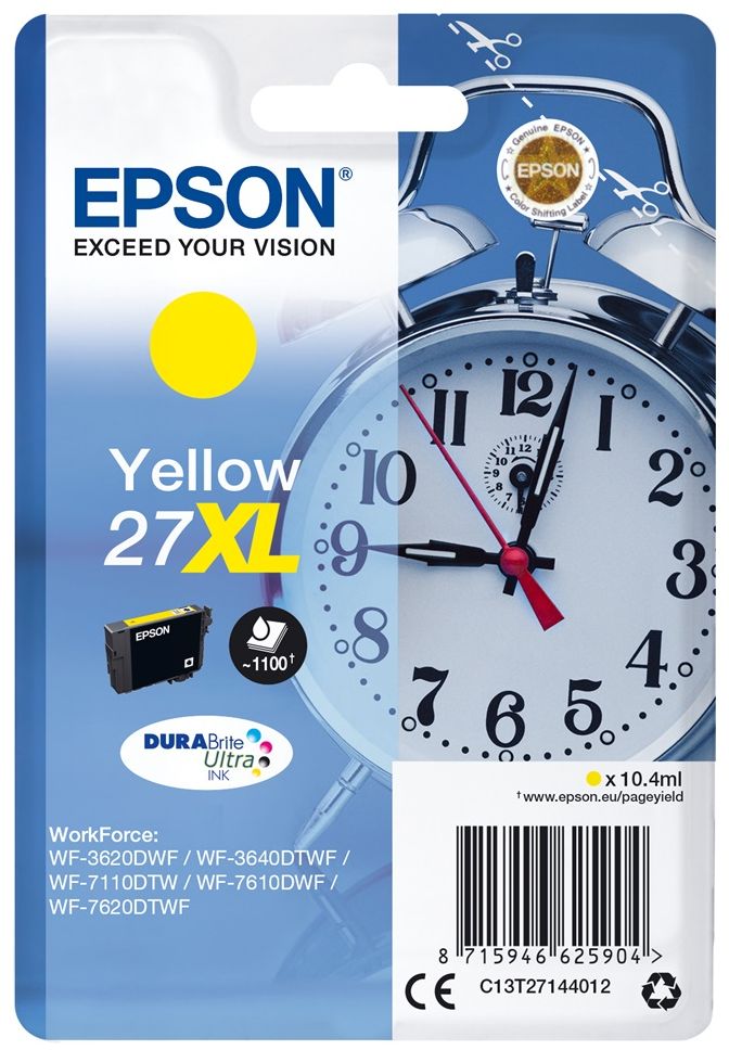 EPSON TINTAPATRON T27144010 YELLOW (27XL)Cikkszám: 11776 Gyártói cikkszám: C13T27144012 Garancia: Gyártói Szállítás: Elérhető Üzletünkben vagy a beszállítónk raktárában polcon található termék.