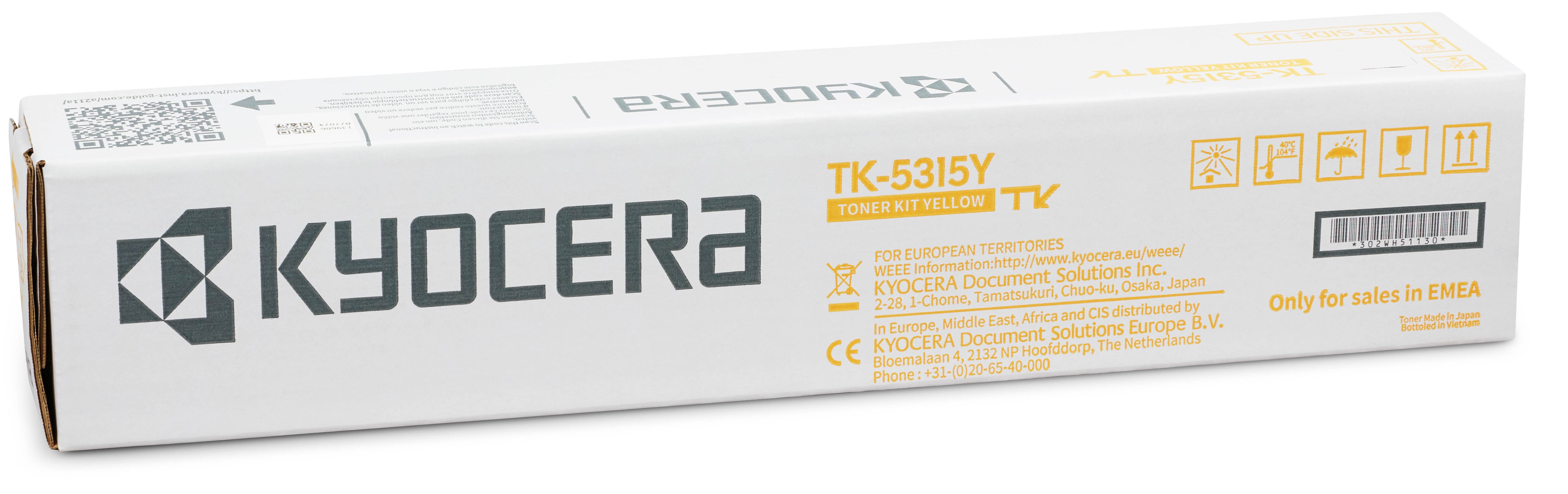 Kyocera TK-5315Y sárga toner Taskalfa 408ciCikkszám: KYTK5315Y Gyártói cikkszám: 1T02WHANL0 Garancia: 1/2 év Szállítás: Elérhető Üzletünkben vagy a beszállítónk raktárában polcon található termék.