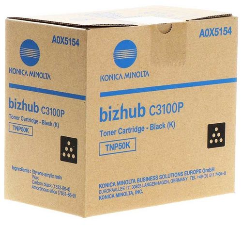 Minolta toner TNP50K (A0X5154) black 5kCikkszám: 92FC24 Gyártói cikkszám: A0X5154 Garancia: Gyártói Szállítás: Elérhető Üzletünkben vagy a beszállítónk raktárában polcon található termék.
